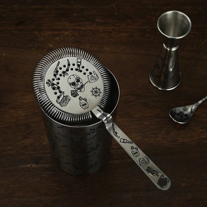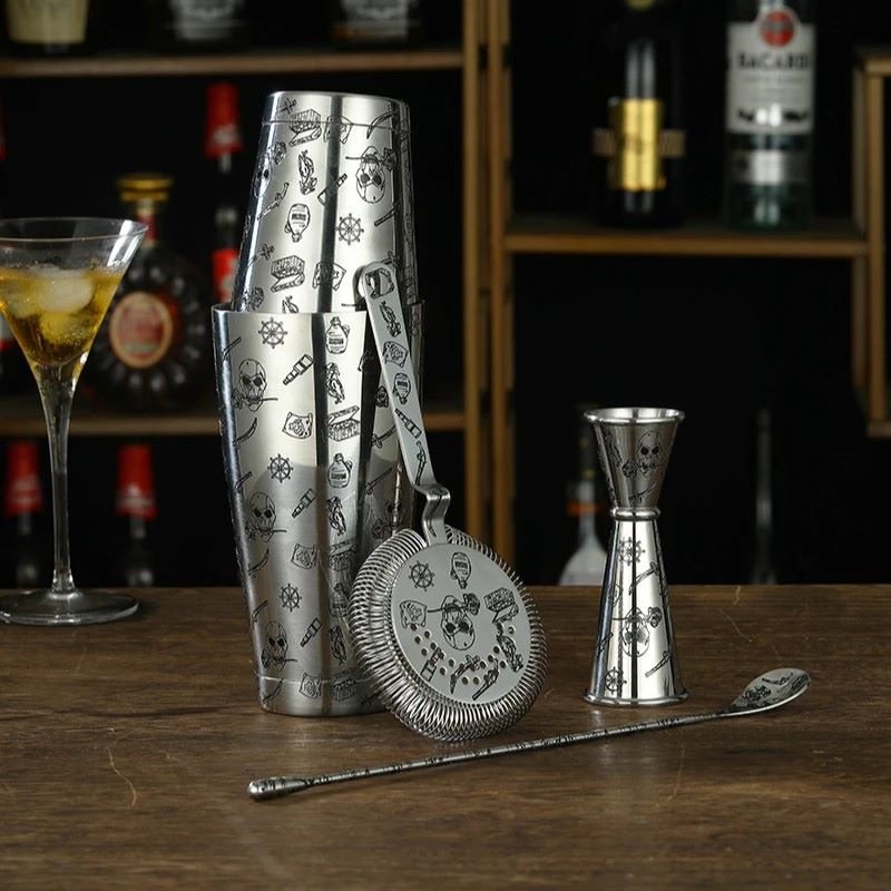 Stainless Steel 5 Piece Cocktail Set with Tattoo Patterns Stainless Steel 5 Piece Cocktail Set with Tattoo Patterns Stainless Steel 5 Piece Cocktail Set with Tattoo Patterns