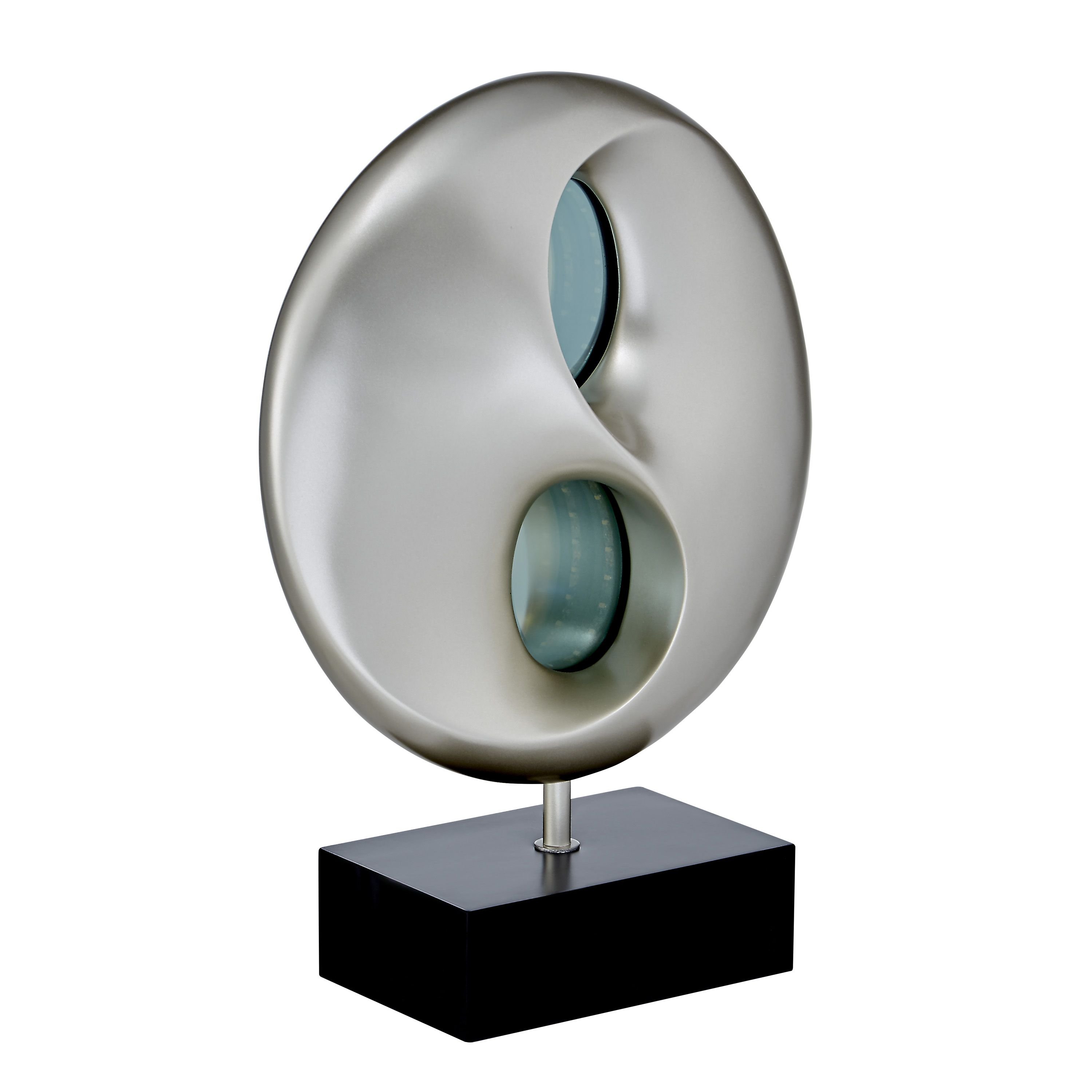 Ultra modern design accent lighting table lamp features polyresin silver orb ball intertwining curved LED lights infinity mirror that sits on elegantly crafted black pedestal. Great addition piece on your night stand, end table, or sofa table. Remarkable accent lighting that can enhance the surrounding ambiance; perfect for a night light, or a mood light to brighten up any room.PRODUCT DIMENSIONS:Overall Dimension: 14.5" x 6" x 20"HListing Includes: One Night Lamp OnlyAssembly Required