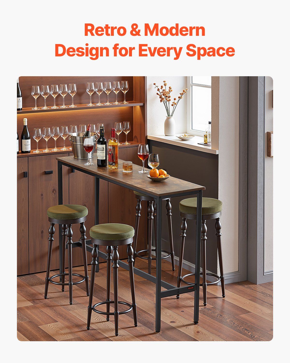 1.Sleek Modern Design: Crafted with clean lines and a minimalist aesthetic, this bar table is the great centerpiece for your bar, café, restaurant, or home dining area. Its contemporary look appeals to young professionals who love stylish yet functional furniture