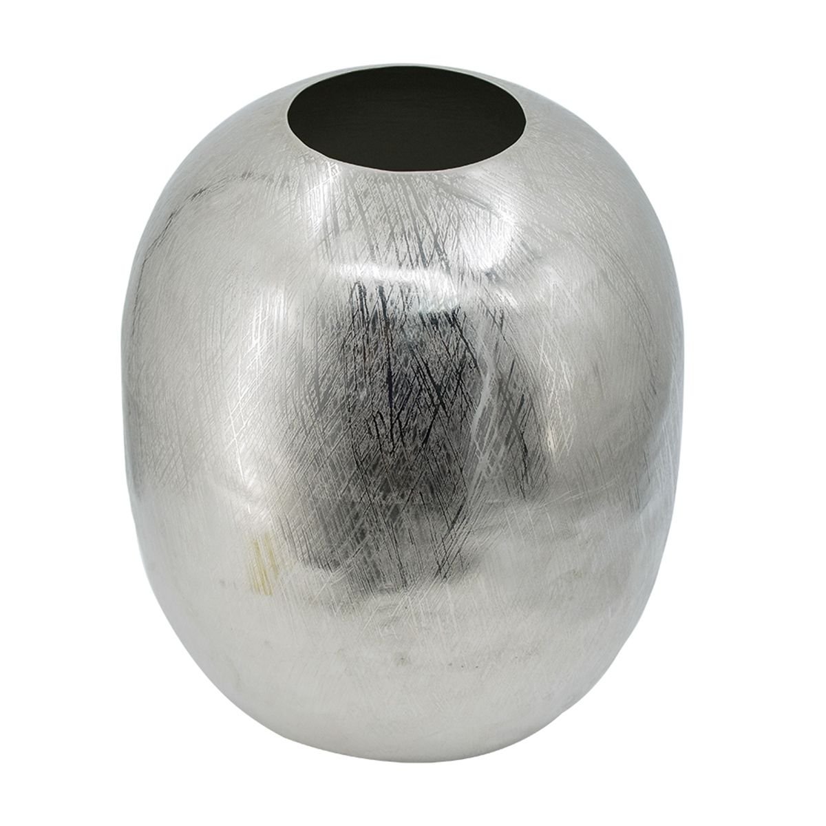Simplicity and a silver streak finish blend to present this compelling aluminum vase.With a metallic finish,this round decorative vase is fashioned from aluminum for a lightweight yet solid feel.Place it on a console table,dining table,or mantel.