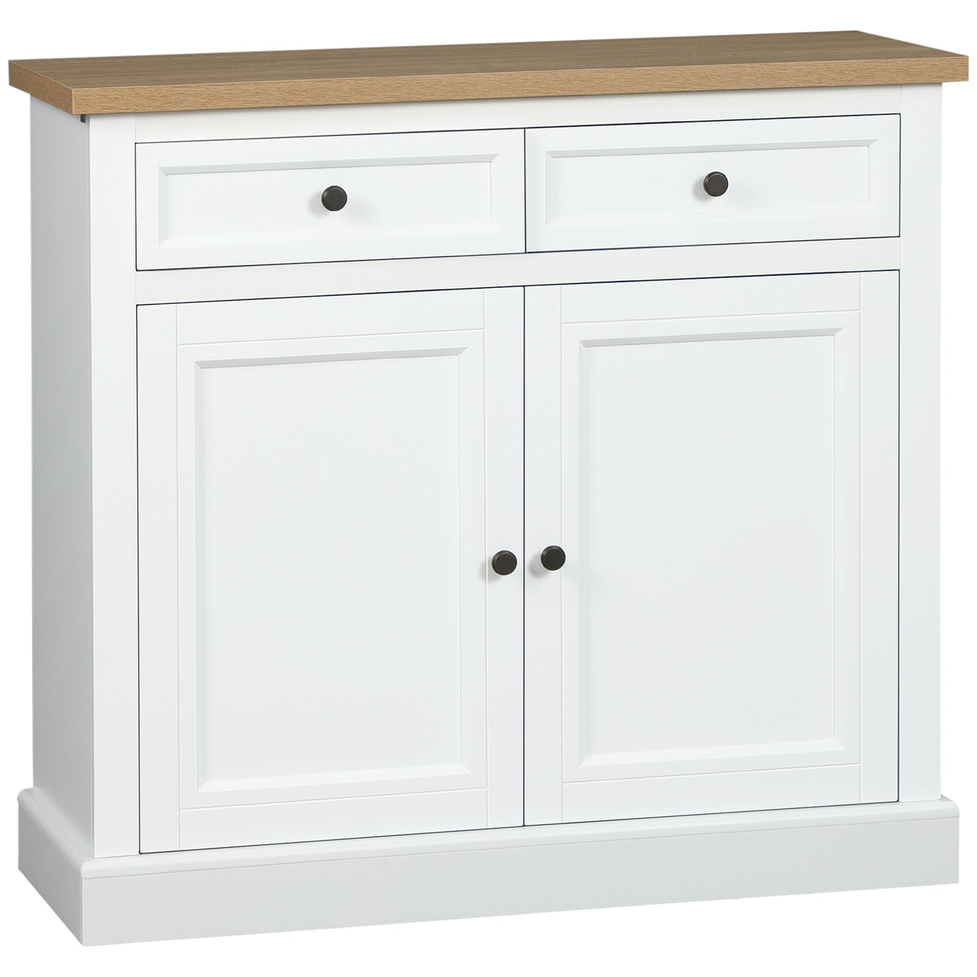 HOMCOM White Sideboard Buffet Cabinet with 2 Storage Drawers 2 Door Kitchen Cabinet for Living Room Entryway
