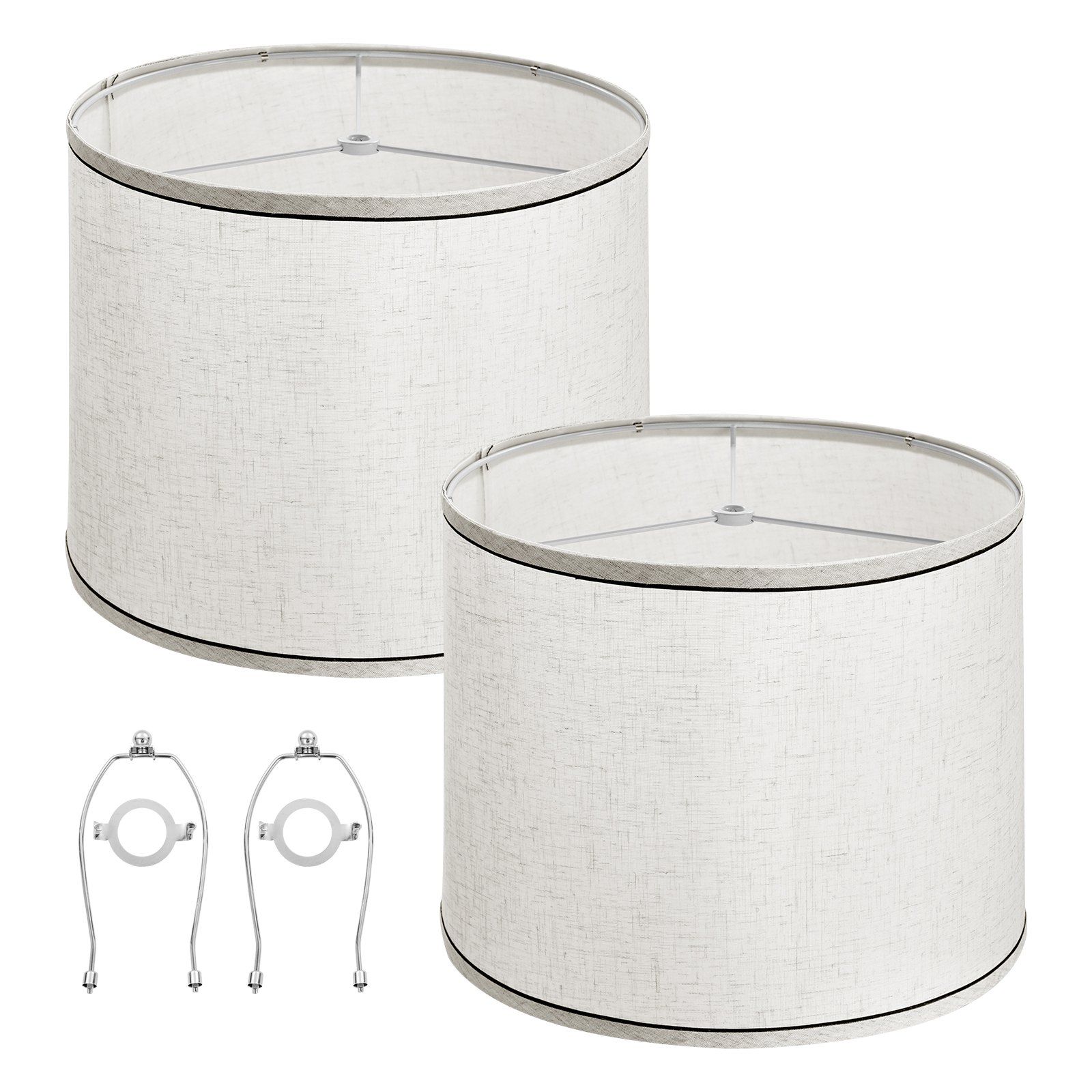 Lamp Shade 2 Set with Harp 11 x 13 x 10 inches (Light Linen with Black Edge) Lamp Shade 2 Set with Harp 11 x 13 x 10 inches (Light Linen with Black Edge) Lamp Shade 2 Set with Harp 11 x 13 x 10 inches (Light Linen with Black Edge)