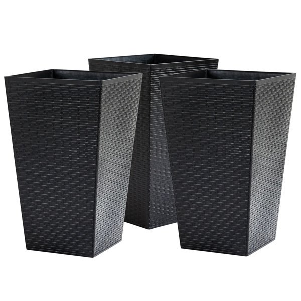 ●   Set of 3: These flower pots come in an eye-catching rattan-like surface design, making them a great accent for any kind of decor.