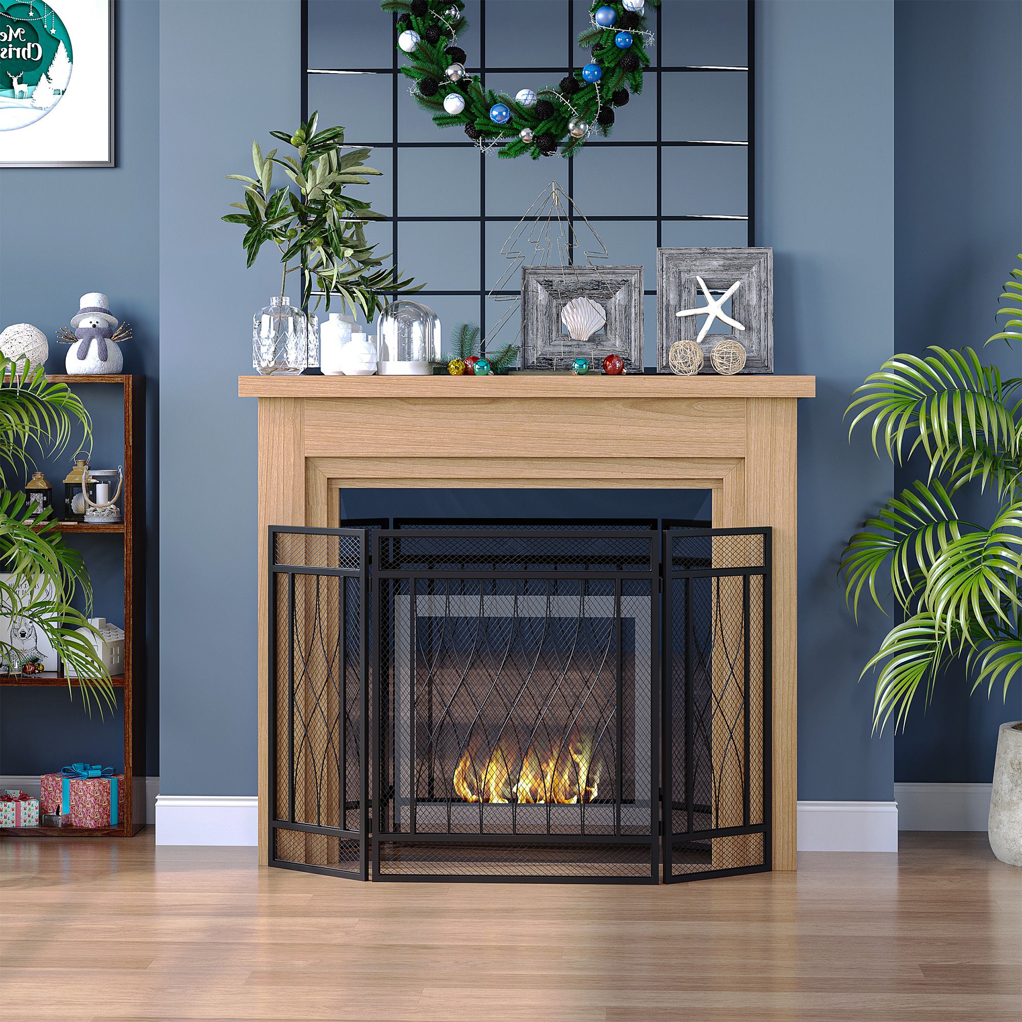 • - Three-panel design, can flexibly match fireplaces of different sizes and shapes