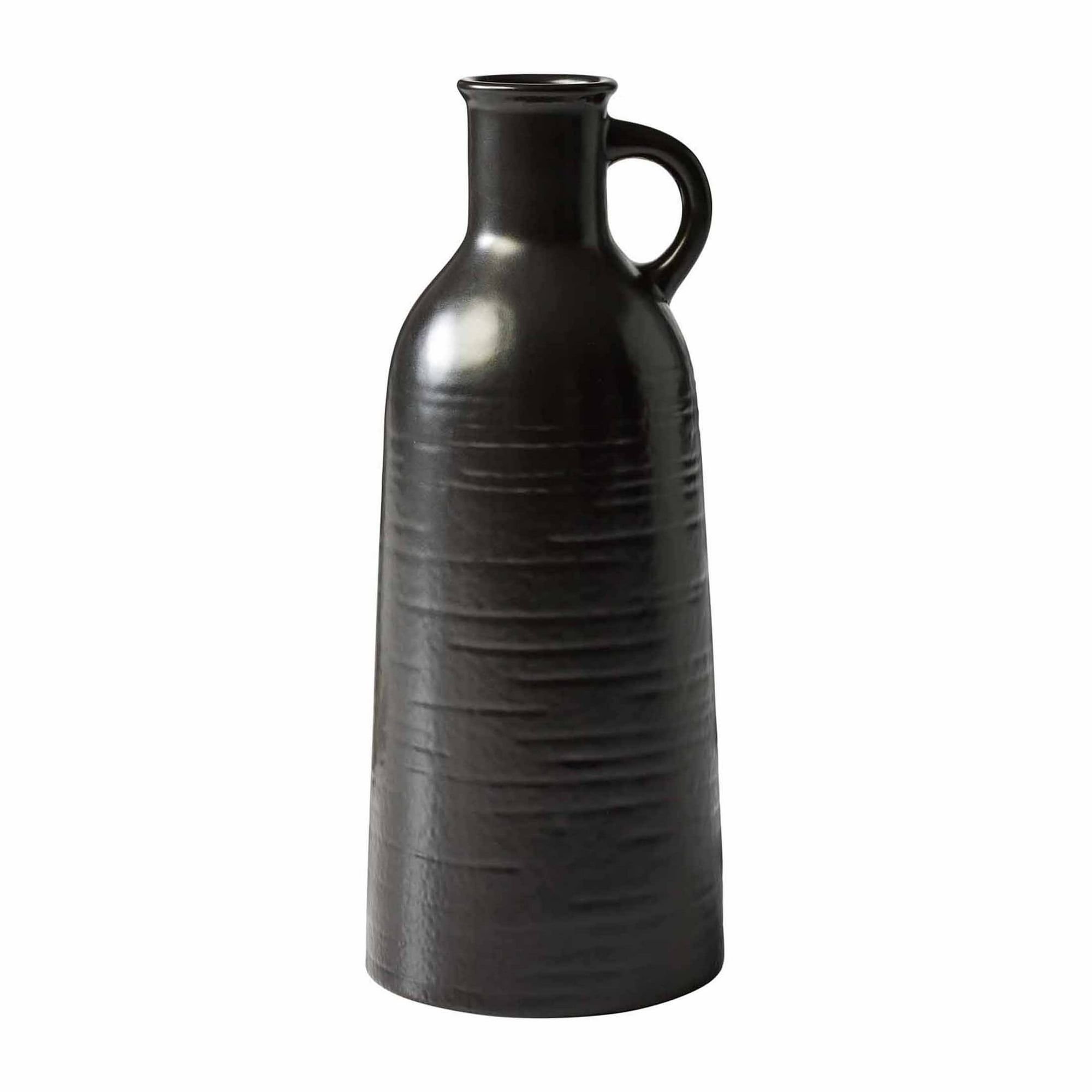 Add minimalist, modern style to your home décor with Better Homes & Gardens 8" Black Ceramic Jug Vase. Crafted from high-quality ceramic, this decorative vase features a subtle textured black finish and a timeless narrow jug shape that makes it easy to incorporate this vase into any existing décor. Use this 8-inch tall decorative vase to display your favorite flowers or greenery on your tabletop, mantel, windowsills, shelves, console tables, and more. Mix and match with more Better Homes & Gardens vases to create a stylish look with varying heights, colors, and shapes.