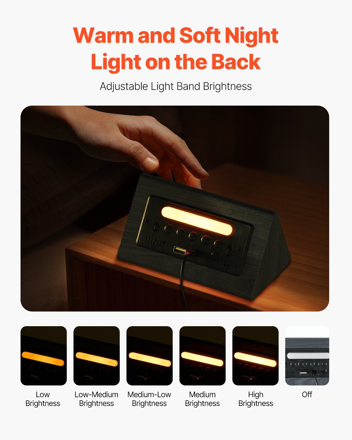 3.Adjustable Night Light: You can choose from 5 brightness settings for the light, whether you want a soft glow to guide you through the night or brighter light for reading. It makes nighttime more comfortable and cozy, and helps create the right atmosphere in any room.